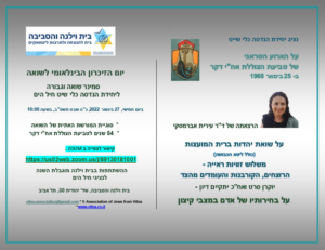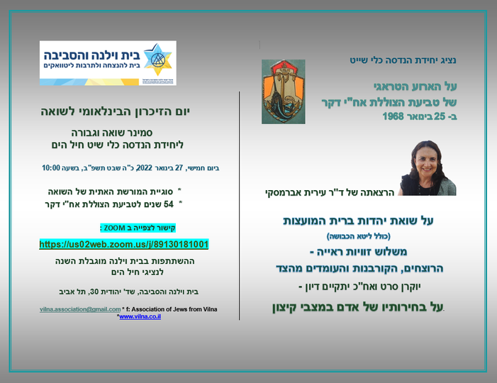 Every year, the Association of Vilna and Vicinity dedicates the 2022 International Day of Remembrance to the Victims of the Holocaust to an educational seminar on heritage and heroism, in which it hosts officers and soldiers of the Navy Naval Engineering Unit, which has been adopted for the last 11 years.