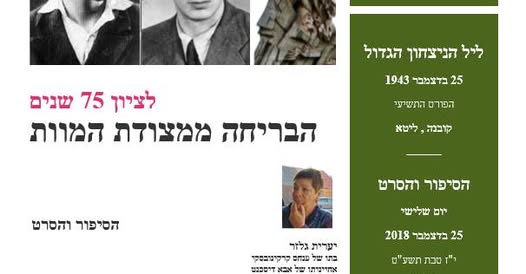 On December 25, 1943, Christmas Eve, 64 prisoners and POWs managed to escape from the 9th Fort - a fortress near the city of Kovna (Kaunas) in Lithuania. The group was condemned to work in a field near the fort to cover up the traces of the crimes committed by the Nazis and their local helpers. The prisoners were destined to be murdered at the end of this awful "work". After the war those who survived would say that this date - Christmas - was their second birthday. Ya'arit Glezer, the daughter of Pinhas Krakinovski, told the story of their escape which demanded courage resourcefulness and determination from the escapees. Her father Pinhas Krakinovski, her mother's youngest brother Abba Discant, and their friends, carried out the cruel job - to dig out the bodies of the thousands of those murdered in the fortress and burn them. Ya'arit brought a personal story straight from Kovna to Beit Vilna. At the same event there was a premiere of a film she shot there, in the fortress. At the event the singers Ada Pashayev and Zhanna Yankovsky who were accompanied by Regina Driker - members of the Yiddish song Studio of Nechama Lifshitz performed songs written by Ya'arit's grandfather Moshe Discant. Miri Krausher read two poems written by Rivka Discant- Krakinovski who was also a partisan fighter. Many people - friends and family members and many guests gathered at the Vilna house and honored the family and the members of the Association of Jews from Vilna and Vicinity with their presence.