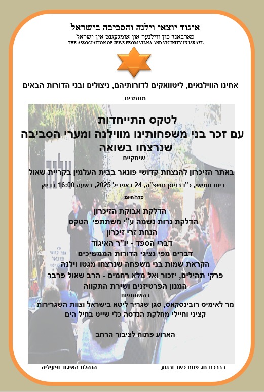As every year, we gathered at Kiryat Shaul, near the Vilna memorial, to mark Holocaust Remembrance Day.